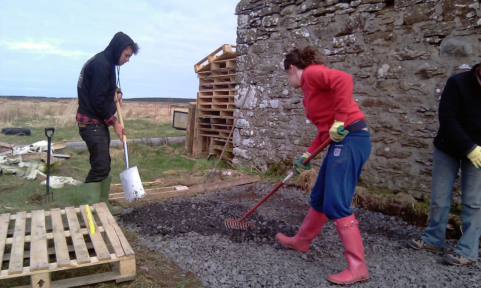Chris (family) is bringing gravel with a trailer and quad from the front of the drive, whenever he manages to draw his attention away from his sweaty feet.