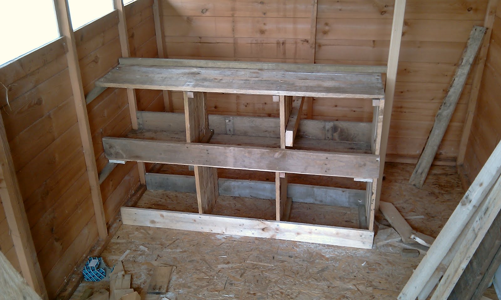 Next I decided to convert a small part of the shed for the laying hens. The last hen house didn't get any egg laying boxes, so this time I am building them first.