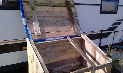 So here we go again, taking pallets apart. Unfortunately we don't have any dry pallets which makes the job of taking them apart harder. The van is still not back on the road so we can't collect any more pallets until it has passed it's M.O.T. next week.