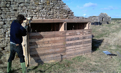 Nearly there. To get enough timber for all the gaps one of the pallets gets stripped completely. The cross beams are later used for another job.