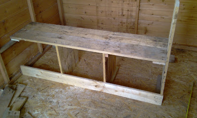Next I decided to convert a small part of the shed for the laying hens. The last hen house didn't get any egg laying boxes, so this time I am building them first.