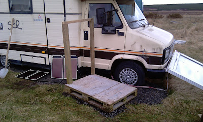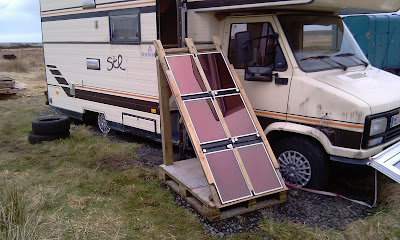 That's where the bottom panel is going to sit. There are three 13wp amorphous briefcase panels I bought last year at a really good price (ebay). I recently tested them in full sunshine and they can output up to 0.91A each. Realistically they produce 2A, which should be enough for Nessie and her ever changing visitors.