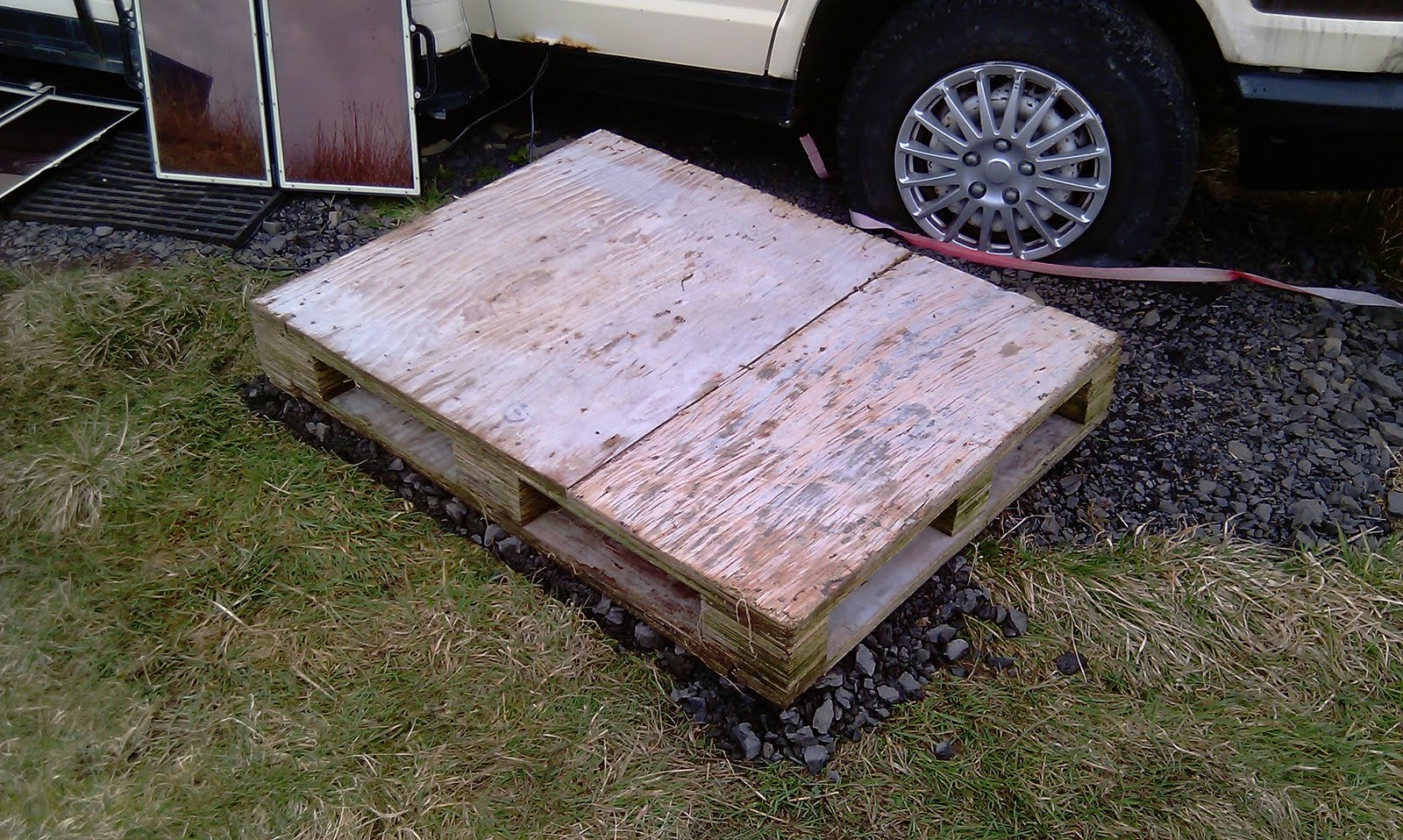 This pallet is made from plywood which is very heavy compared to other pallets. The perfect base for my project. I won't have to pour concrete and bolt it all to the ground. Hopefully.